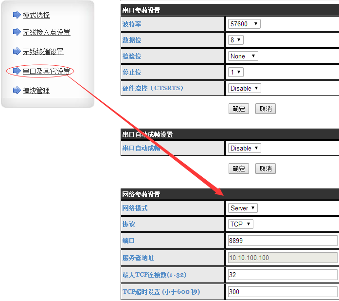 該實驗都是在模塊默認情況下。AP模式TCP server。