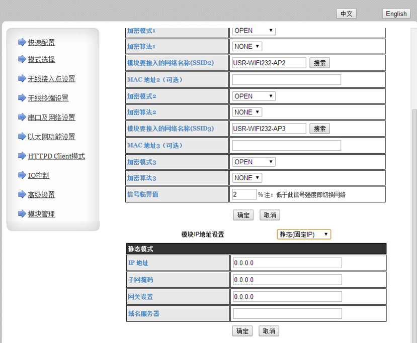 6:模塊支持連接路由器之后為DHCP動(dòng)態(tài)或者IP和使用靜態(tài)IP