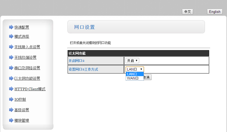 1:快速配置頁(yè)面,可以完成最基本的配置,AP配置,STA連接網(wǎng)絡(luò)配置,網(wǎng)絡(luò)協(xié)議配置等快捷配置。