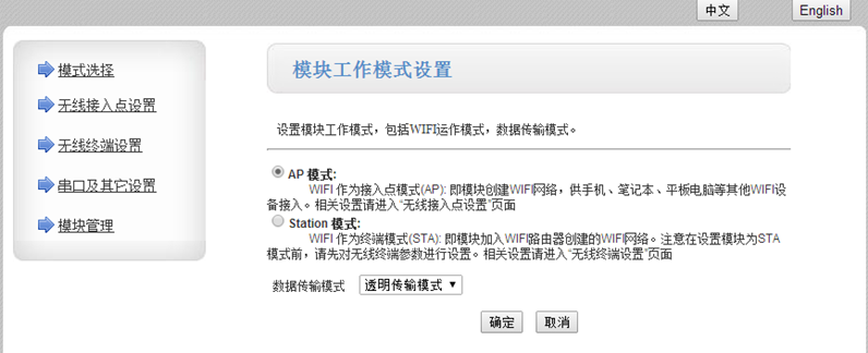 2:網(wǎng)頁(yè)設(shè)置支持兩種工作模式AP模式 STA模式。