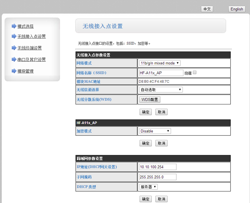 模塊在AP模式下默認(rèn)IP是10.10.100.254.在瀏覽器上輸入此IP。用戶名和密碼都是admin。