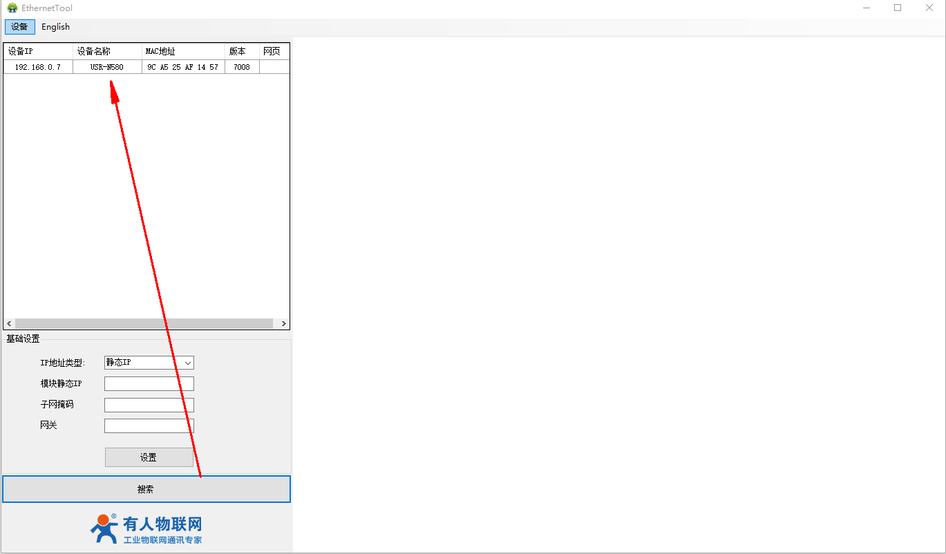 用H7系列配置軟件搜索N580設(shè)備,單擊搜索