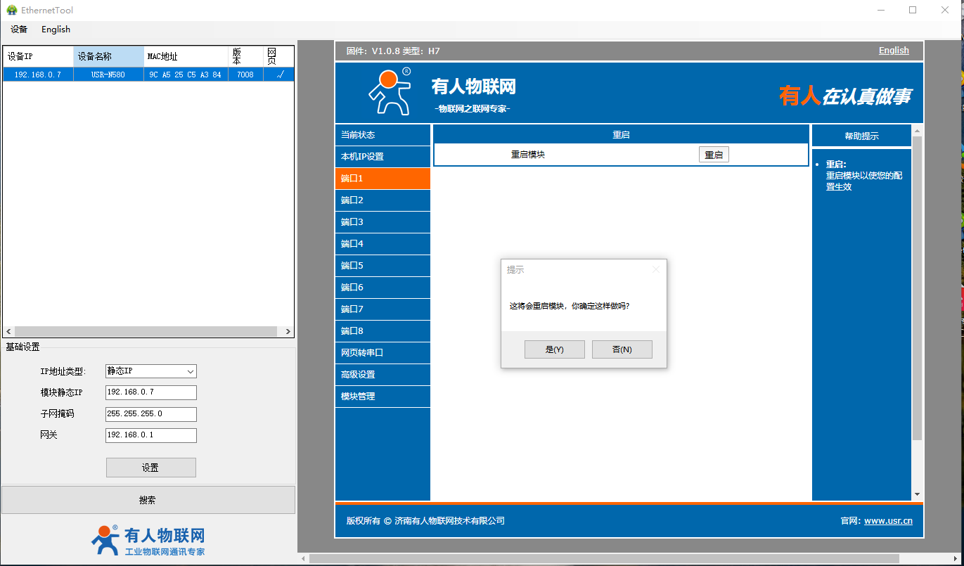 1、USR-N580-H7產(chǎn)品 數(shù)量1個(gè)