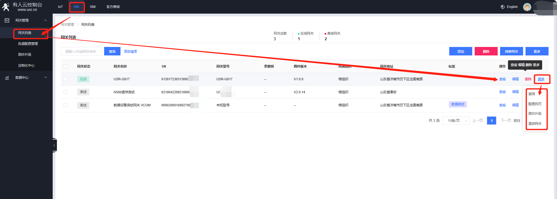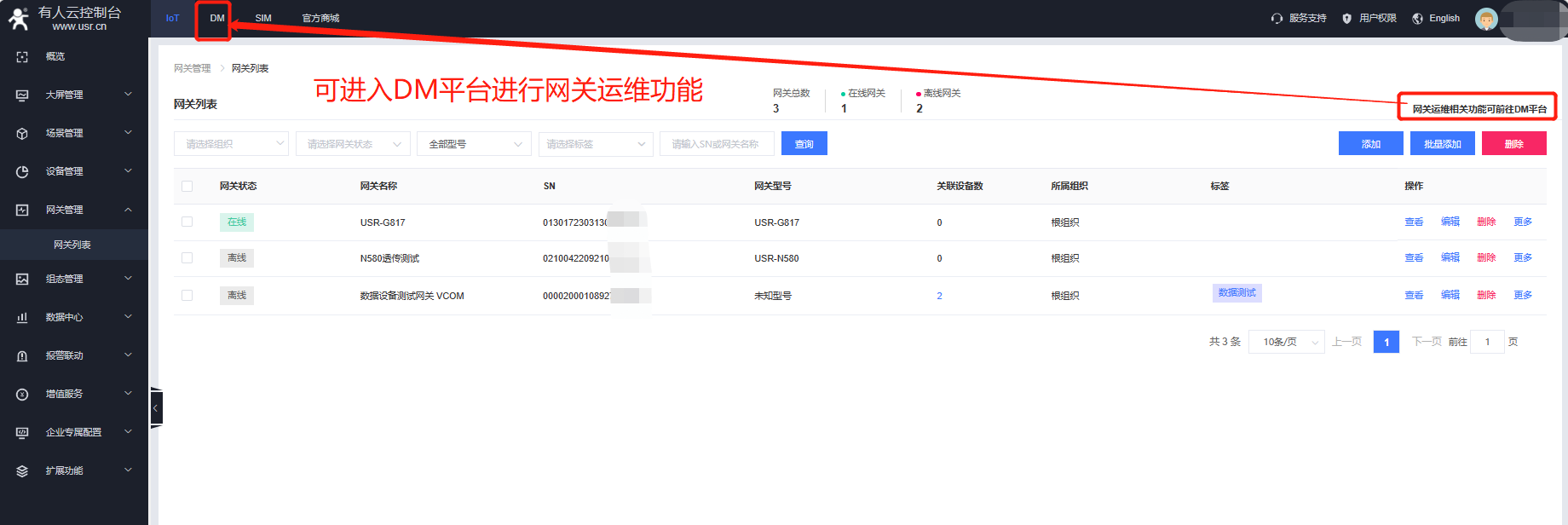 2)進(jìn)入“DM平臺(tái)”進(jìn)行網(wǎng)關(guān)運(yùn)維