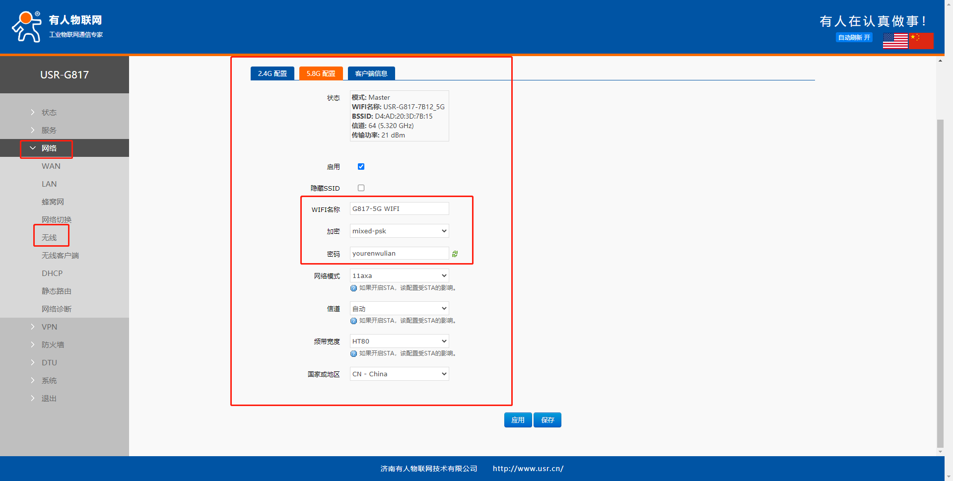 USR-G817工業(yè)級路由器如何修改WiFi參數(shù)