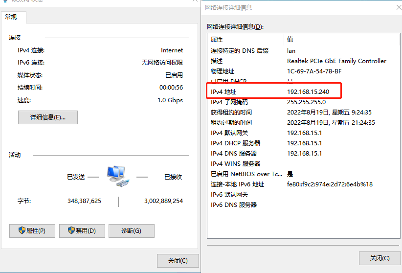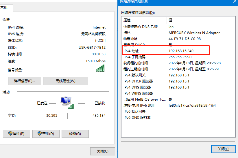 5待設(shè)備重啟成功后,重新查看電腦獲取的IP,變成192.168.15.249,網(wǎng)關(guān)為192.168.15.1,瀏覽器輸入192.168.15.1進入配置網(wǎng)頁。