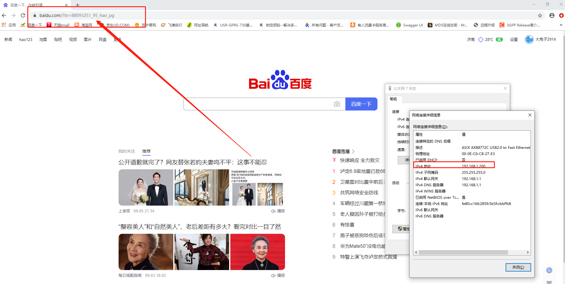 3.打開瀏覽器(不要用360瀏覽器),在地址欄輸入電腦獲取到的網(wǎng)關(guān),通過網(wǎng)關(guān)登錄內(nèi)置網(wǎng)頁界面,出廠默認(rèn)網(wǎng)關(guān)為192.168.1.1、密碼為admin