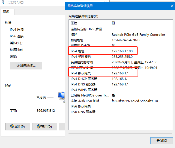 2.雙擊該網(wǎng)卡,點(diǎn)擊詳細(xì)信息,可以查看電腦獲取到的IP以及網(wǎng)關(guān)