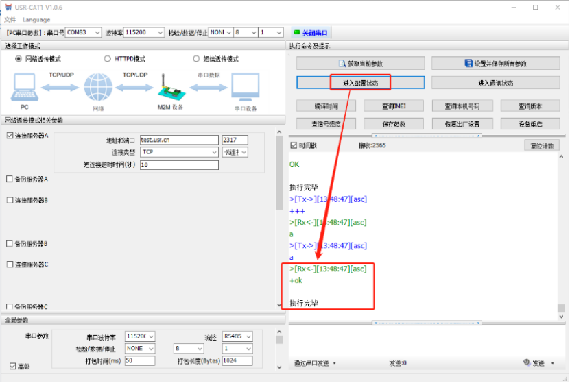 2、設(shè)置DR771的工作模式為短信透傳模式