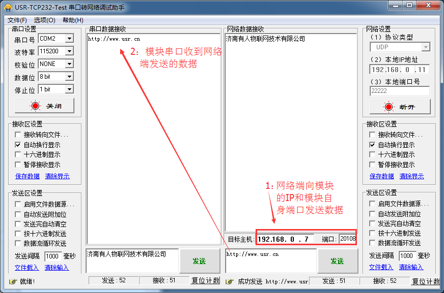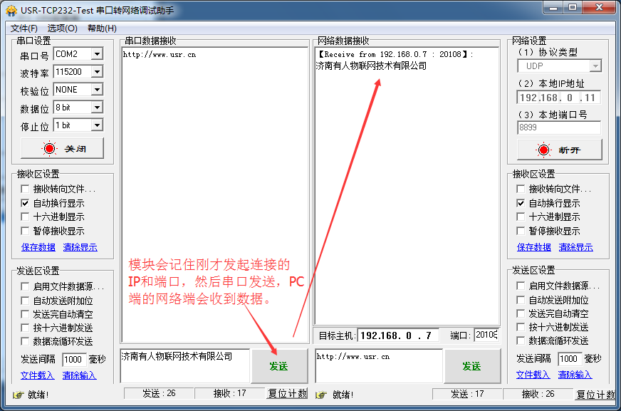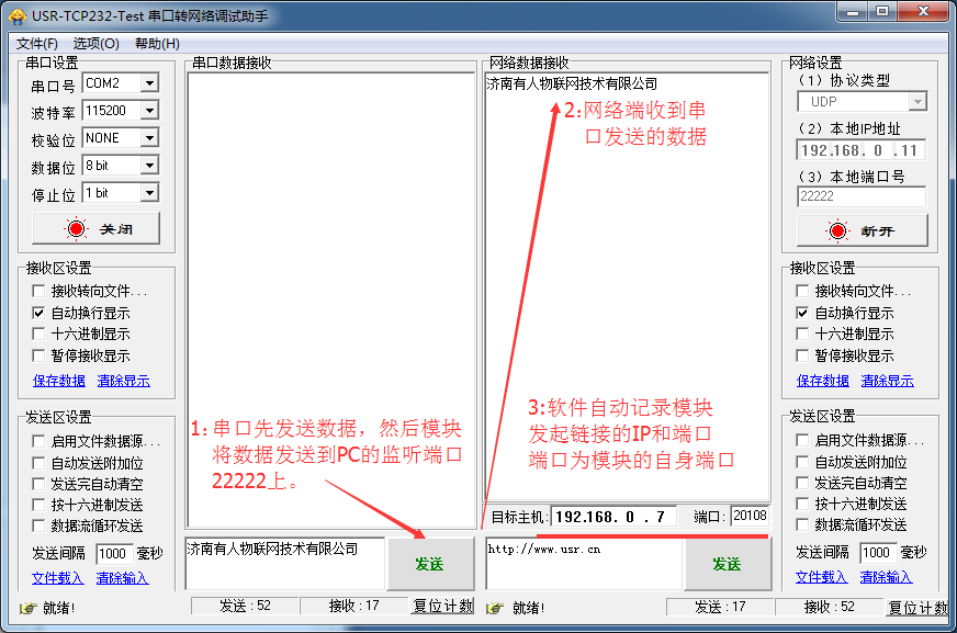 3:網(wǎng)絡(luò)發(fā)送數(shù)據(jù),串口接收