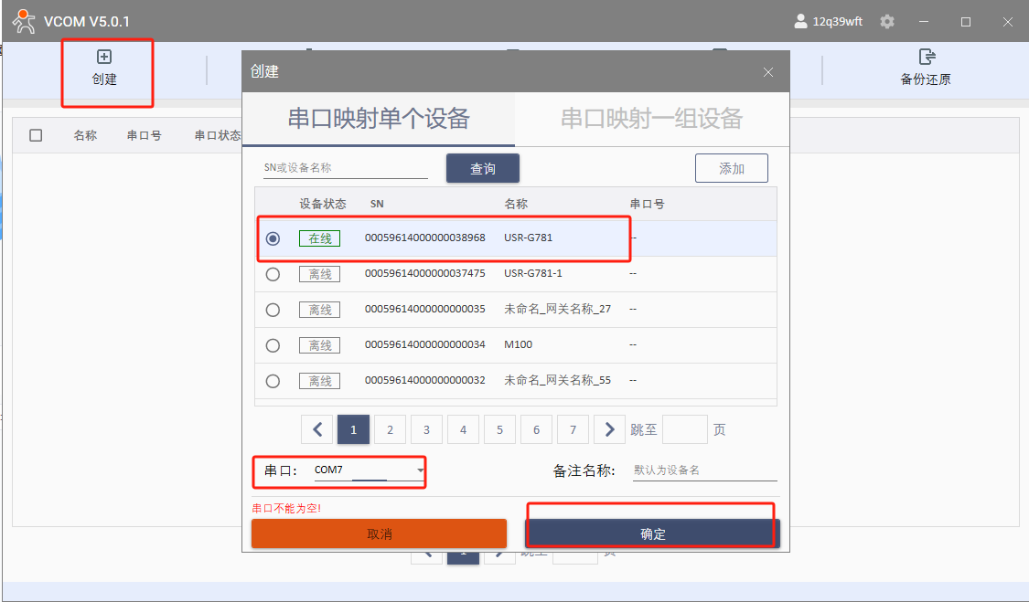點(diǎn)擊創(chuàng)建虛擬串口