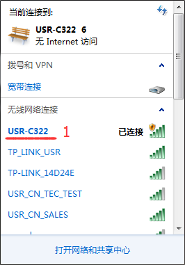3.模塊默認(rèn)參數(shù)下,電腦連接到模塊無線信號.