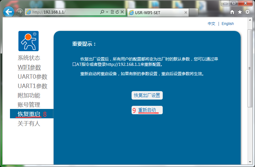 5.參數(shù)設(shè)置完畢后需重啟模塊使參數(shù)生效。