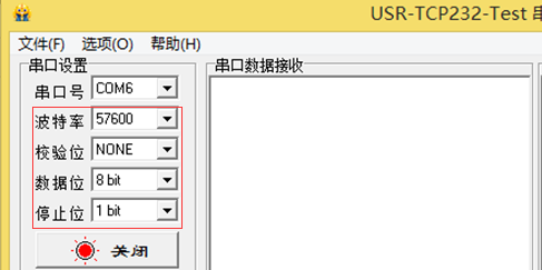 3、打開串口通信助手,將串口參數(shù)設(shè)置成與USR-BLE100串口參數(shù)一致如下圖紅框所示,