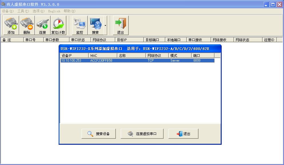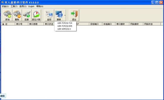 打開(kāi)有人虛擬串口軟件USR-VCOM,點(diǎn)擊搜索,選擇“USR-WIFI232-XX”系列產(chǎn)品