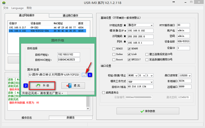 1、將M0系列的產(chǎn)品,加入路由器中,升級使用的電腦也加入同一個路由,使用配置軟件搜索M0。