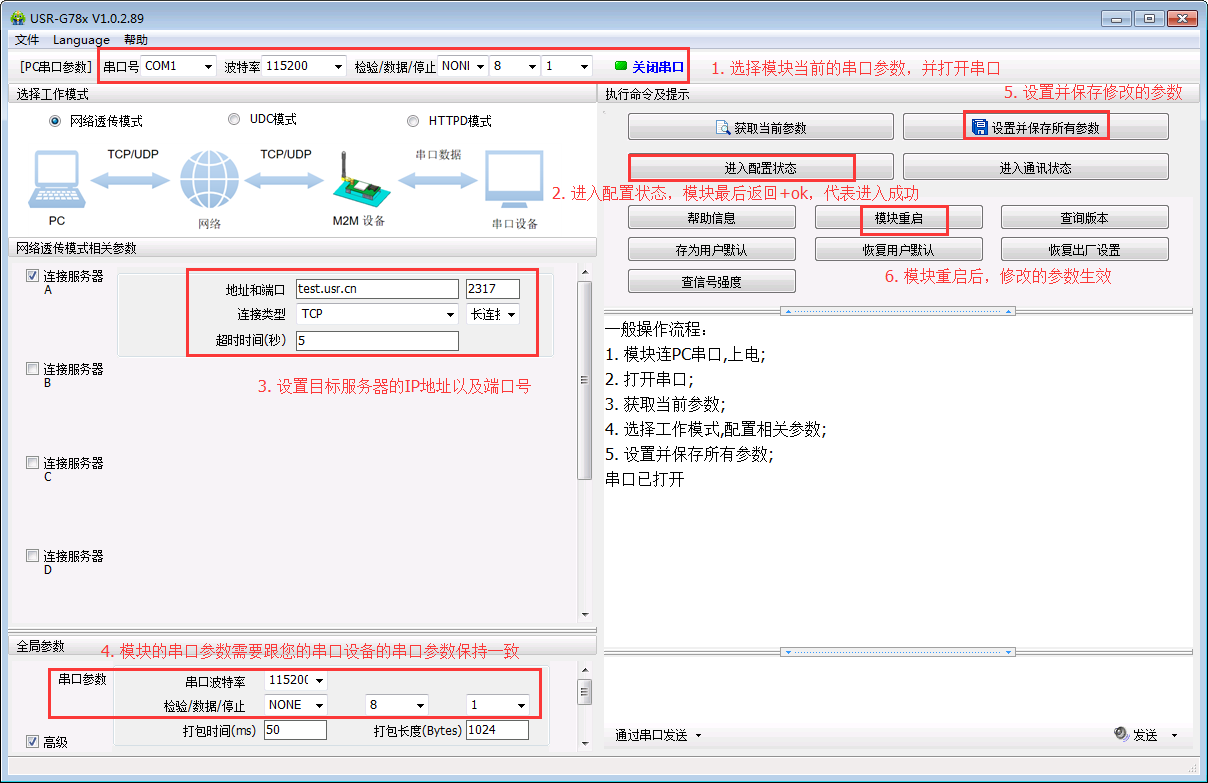 正常情況下,到這里,模塊就已經(jīng)連上您設置好的服務器了。