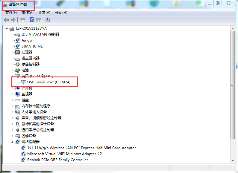 其中串口號(hào)可以在電腦的“設(shè)備管理器”中查看,見(jiàn)下圖;