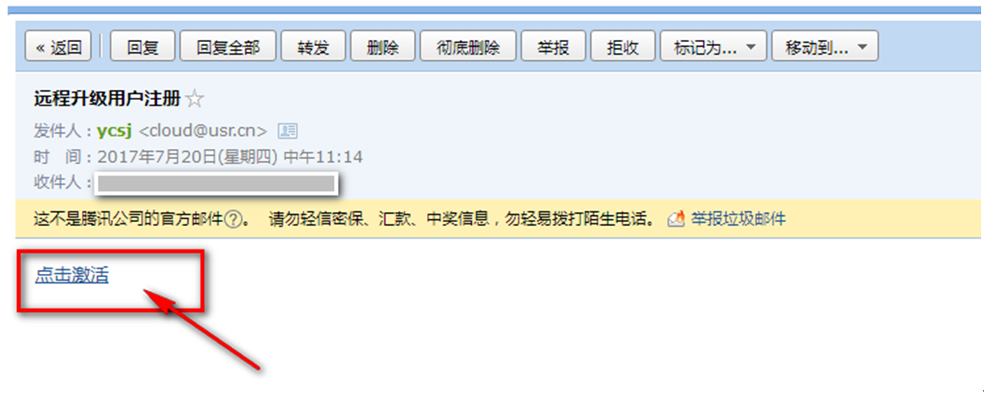 3、點擊注冊后,會向您填寫的郵箱內(nèi)發(fā)送一封郵件,如下截圖