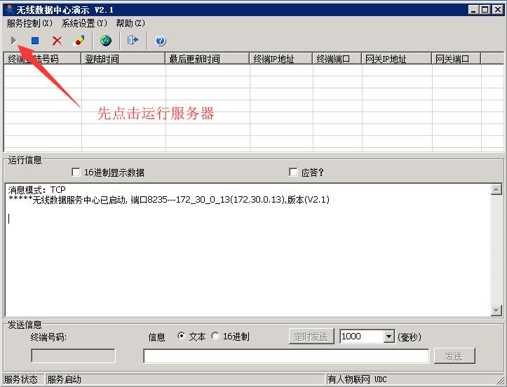 系統(tǒng)設(shè)置-->設(shè)置服務(wù)IP和端口號(hào)-->選擇服務(wù)類型-->服務(wù)模式默認(rèn)-->確定