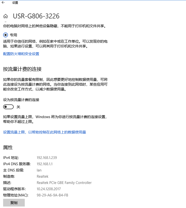 2、 電腦獲取到IP,網(wǎng)關(guān)默認(rèn)是192.168.1.1,是G806的LAN口IP,也是G806的局域網(wǎng)IP地址。