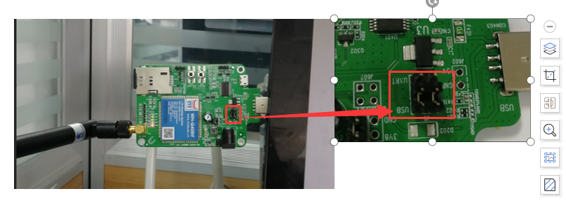 2. 安裝驅(qū)動完成后,將405tf測試底板上的跳線帽接到USB端,見下圖
