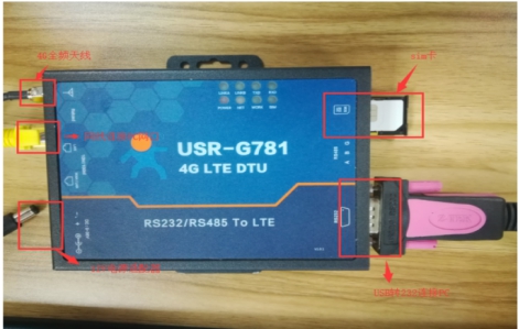 (1) 硬件連接: G781的串口通過UAB轉(zhuǎn)RS232/485接到PC上,LAN口通過網(wǎng)線鏈接到電腦的網(wǎng)口上,用我司提供的適配器供電。