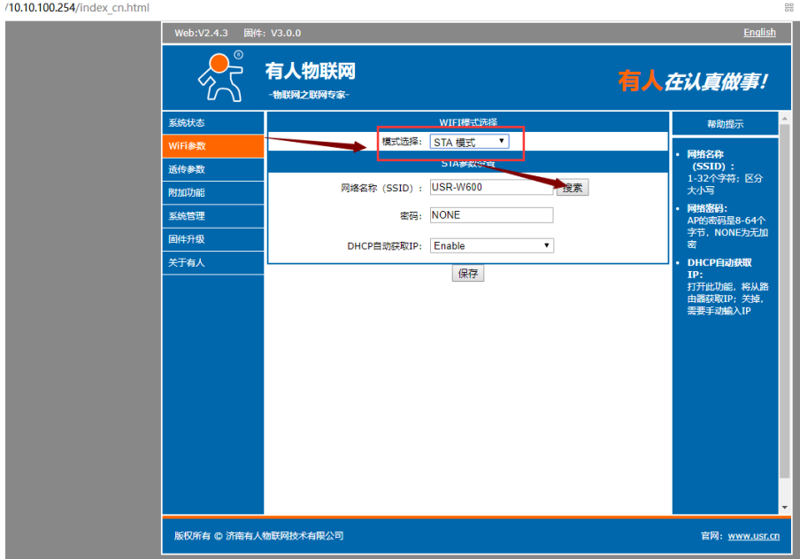 a.同樣的,先加入模塊的WIFI網(wǎng)絡(luò),登錄10.10.100.254.