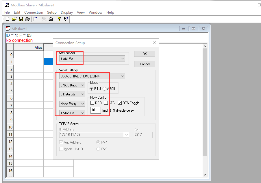 10、打開modbus poll和modbus slave軟件,分別設(shè)置參數(shù),選擇modbus tcp/ip協(xié)議,然后連接W610的端口和ip;