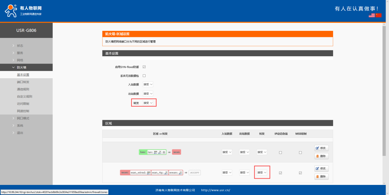 在sta路由器防火墻---基本設(shè)置中的拒絕更改為接受,并保存應(yīng)用