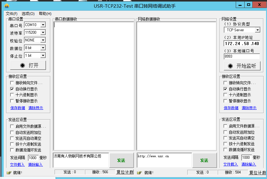 1、首先在遠(yuǎn)程服務(wù)器端打開(kāi)一個(gè)網(wǎng)絡(luò)調(diào)試助手,設(shè)置成TCP server以及本地端口號(hào)這里端口號(hào)設(shè)置成8993,開(kāi)始監(jiān)聽(tīng)