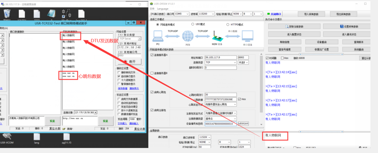 DTU串口和虛擬串口雙向數(shù)據(jù)收發(fā)結(jié)果見(jiàn)下圖