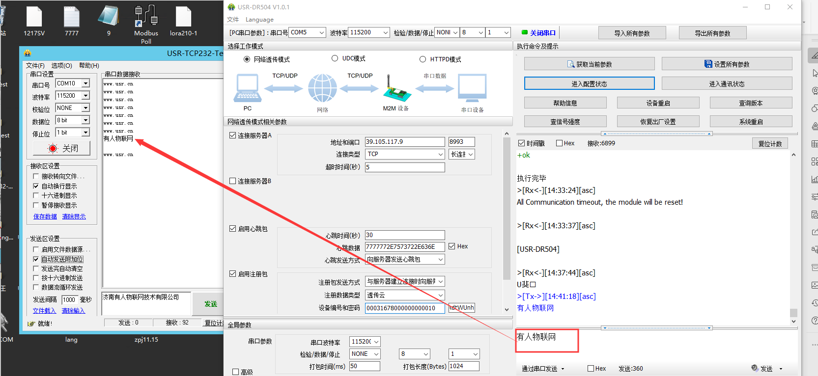 2、504串口通過(guò)USB轉(zhuǎn)485接到電腦端,裝上sim卡,接上天線,上電。