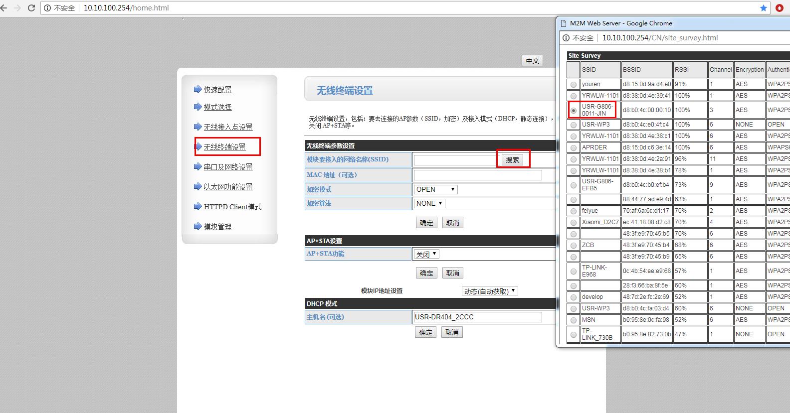 USR-DR404出廠默認(rèn)是AP模式,電腦無線網(wǎng)卡去搜索USR-DR404的wifi。