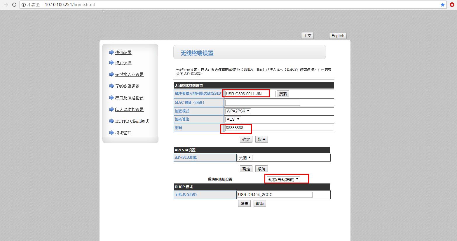 STA模式設(shè)置成功之后,電腦無線連接USR-G806的wifi,用路由器IP登錄路由器網(wǎng)頁。