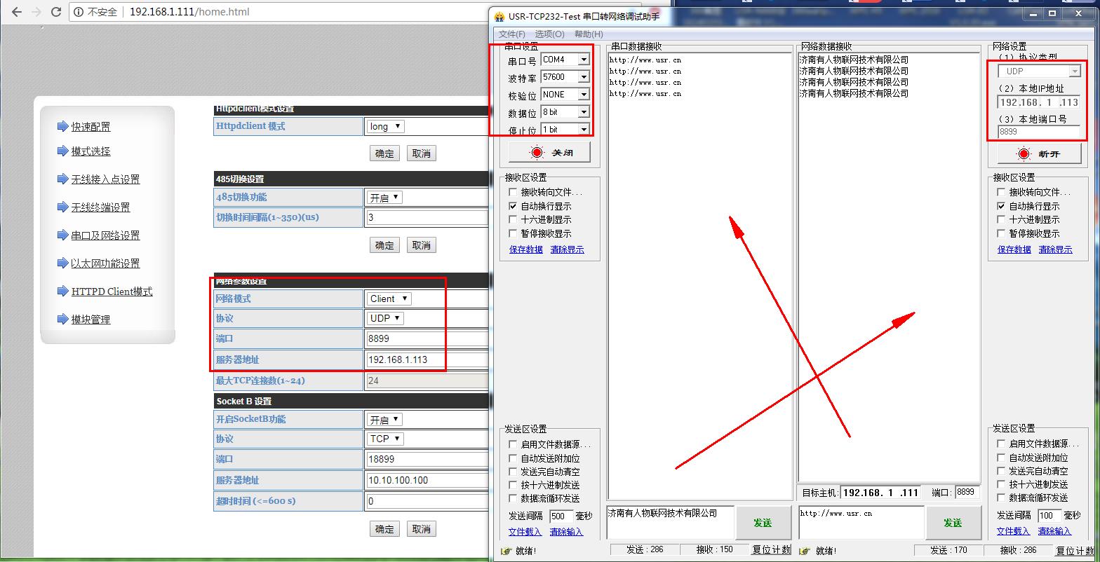 USR-DR404做UDP client,電腦網(wǎng)絡(luò)助手做UDP。