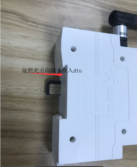 1. 硬件連接:裝上sim卡,sim卡依照?qǐng)D1(1)的方式放入dtu當(dāng)中。接上天線(4g天線),USR-DR504的串口通過USB轉(zhuǎn)485接到PC上,用我司提供的適配器供電,整個(gè)連接圖如圖1(2)所示。