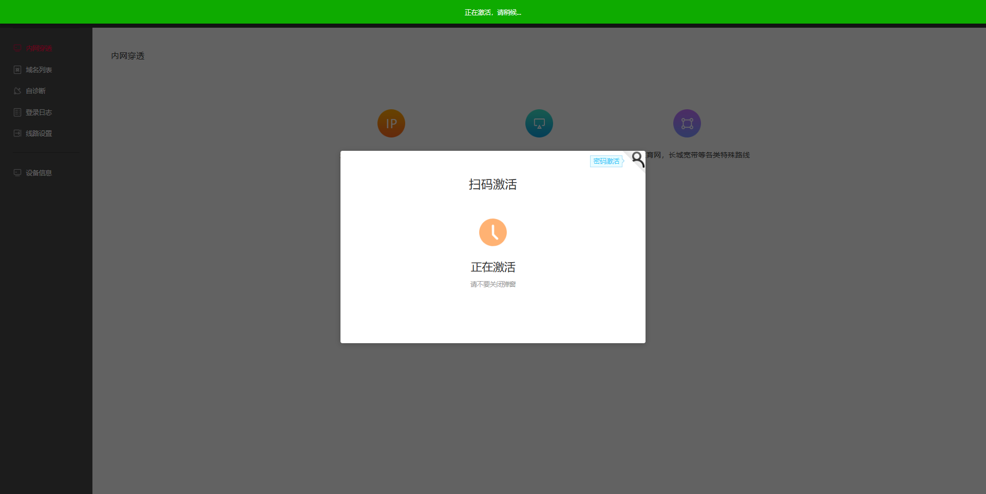掃描成功后,顯示正在激活,提示手機(jī)端確認(rèn)。