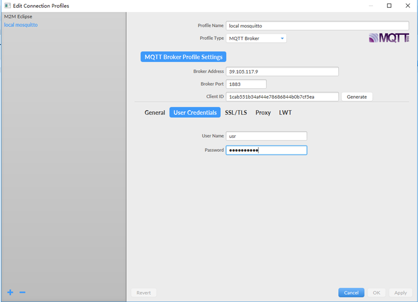 打開mqtt客戶端,這里使用的時(shí)mqttfx軟件,設(shè)置該軟件與gm35連接入同一個(gè)mqtt服務(wù)器。
