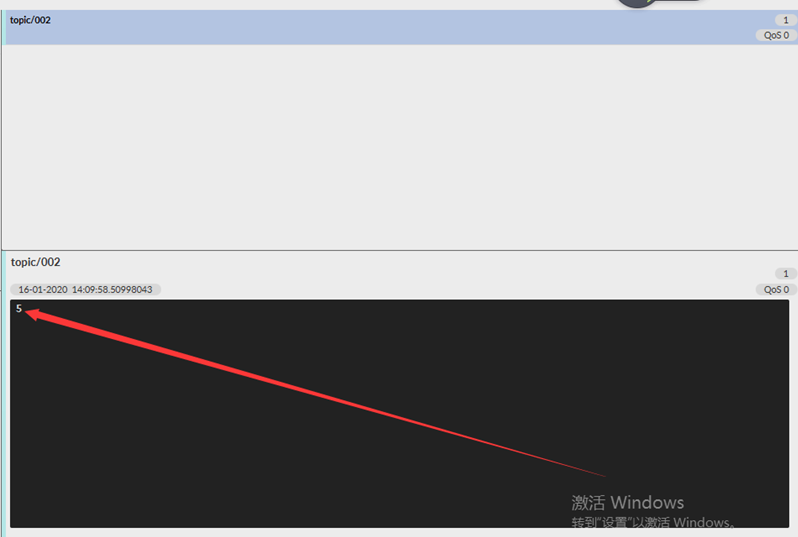通過軟件去下發(fā)主題topic/003,主題內(nèi)數(shù)據(jù)為111