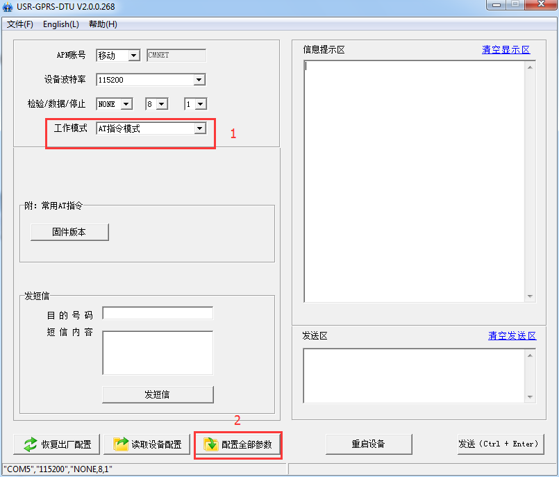 DTU在AT指令模式下支持標(biāo)準(zhǔn)的AT指令集,可以使用指令發(fā)送短信等,本文檔通過兩個(gè)例子說明使用AT指令發(fā)送短信: