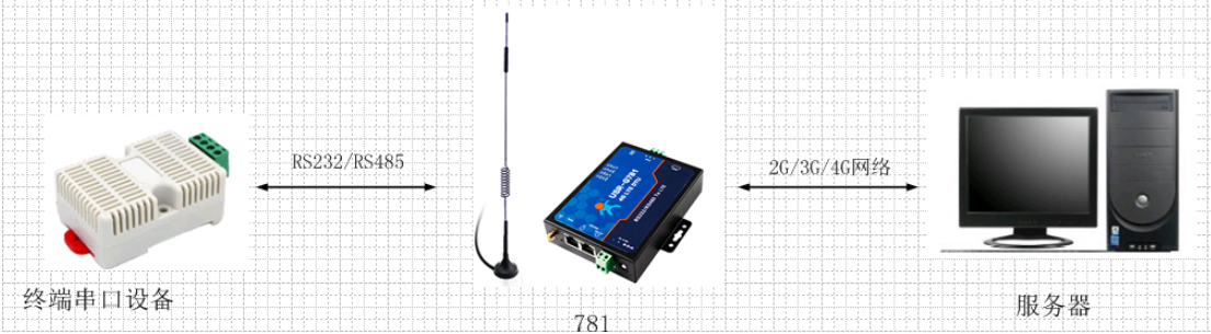 數(shù)據(jù)流向: 終端串口設(shè)備發(fā)送數(shù)據(jù)--->781--->服務(wù)器