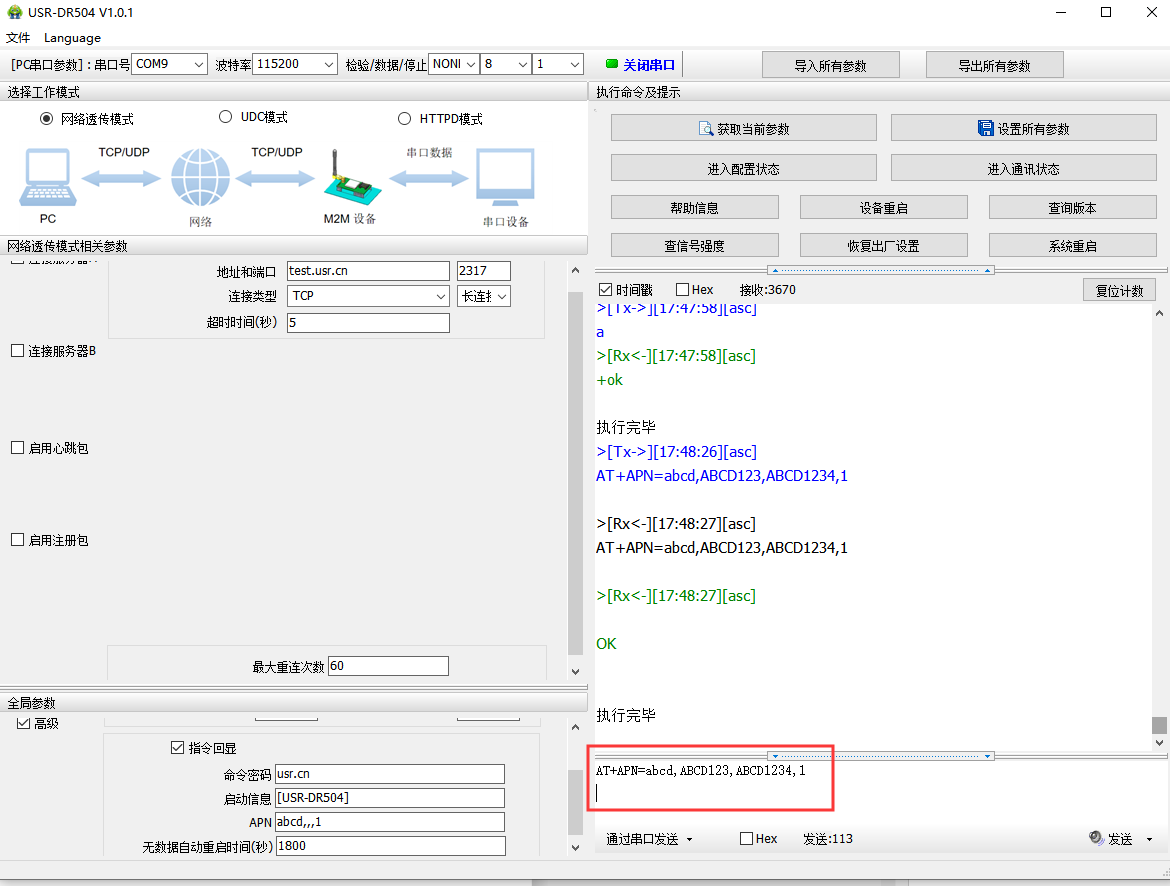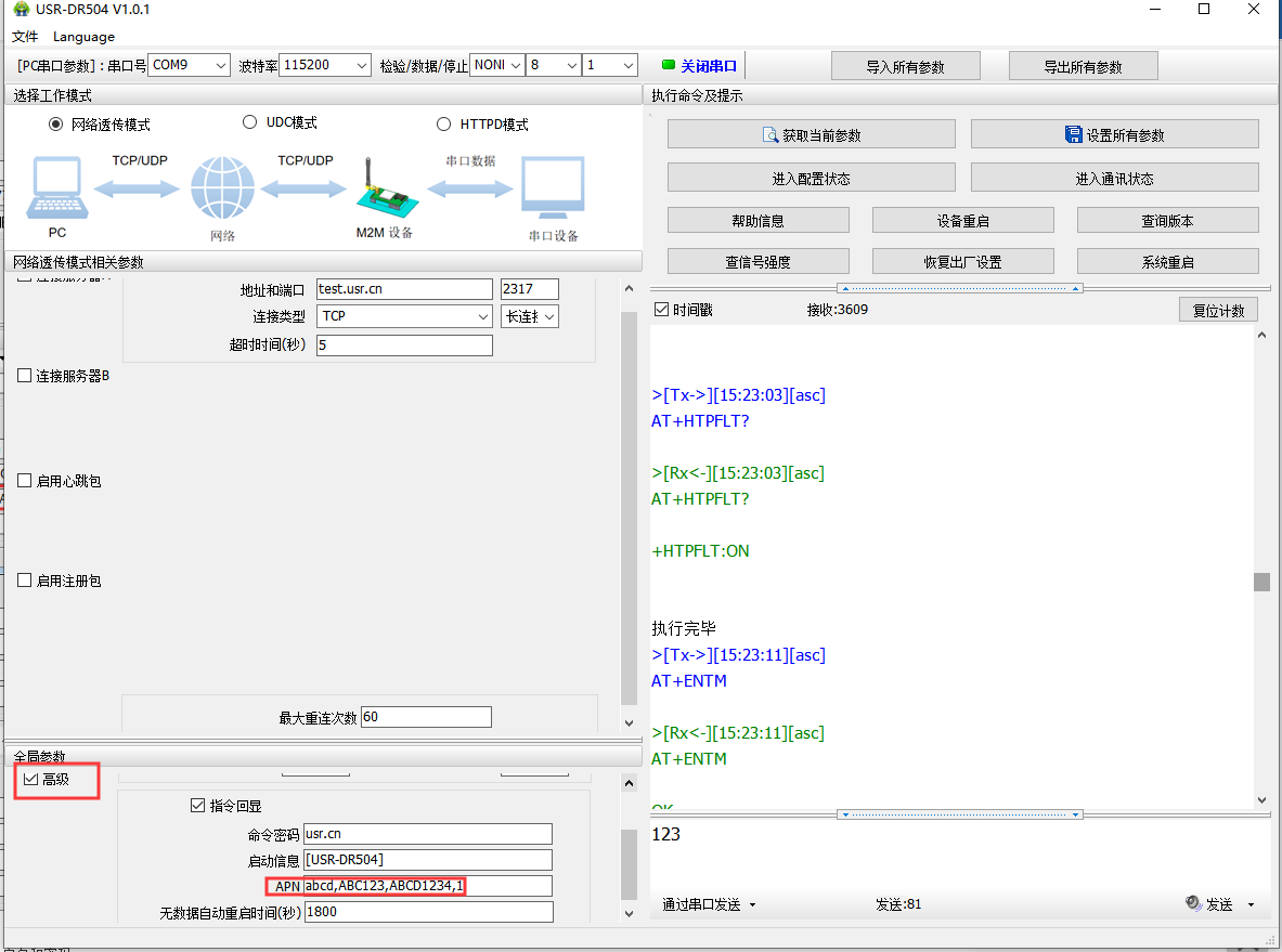 (1)未設(shè)置有關(guān)APN的相關(guān)參數(shù),直接使用APN卡進(jìn)行聯(lián)網(wǎng)和服務(wù)器連接,進(jìn)行相關(guān)參數(shù)配置之后再進(jìn)行測(cè)試