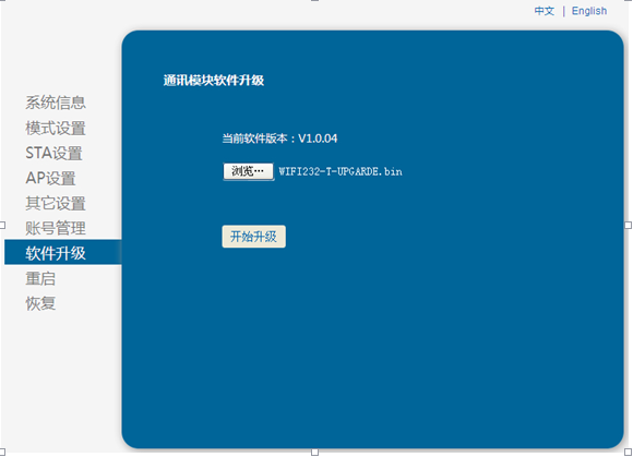 1.登陸模塊升級專用界面,AP模式下是10.10.100.254/iweb.html,STA模式下是路由器分配的地址+/iweb.html,即在地址后面增加/iweb.html。