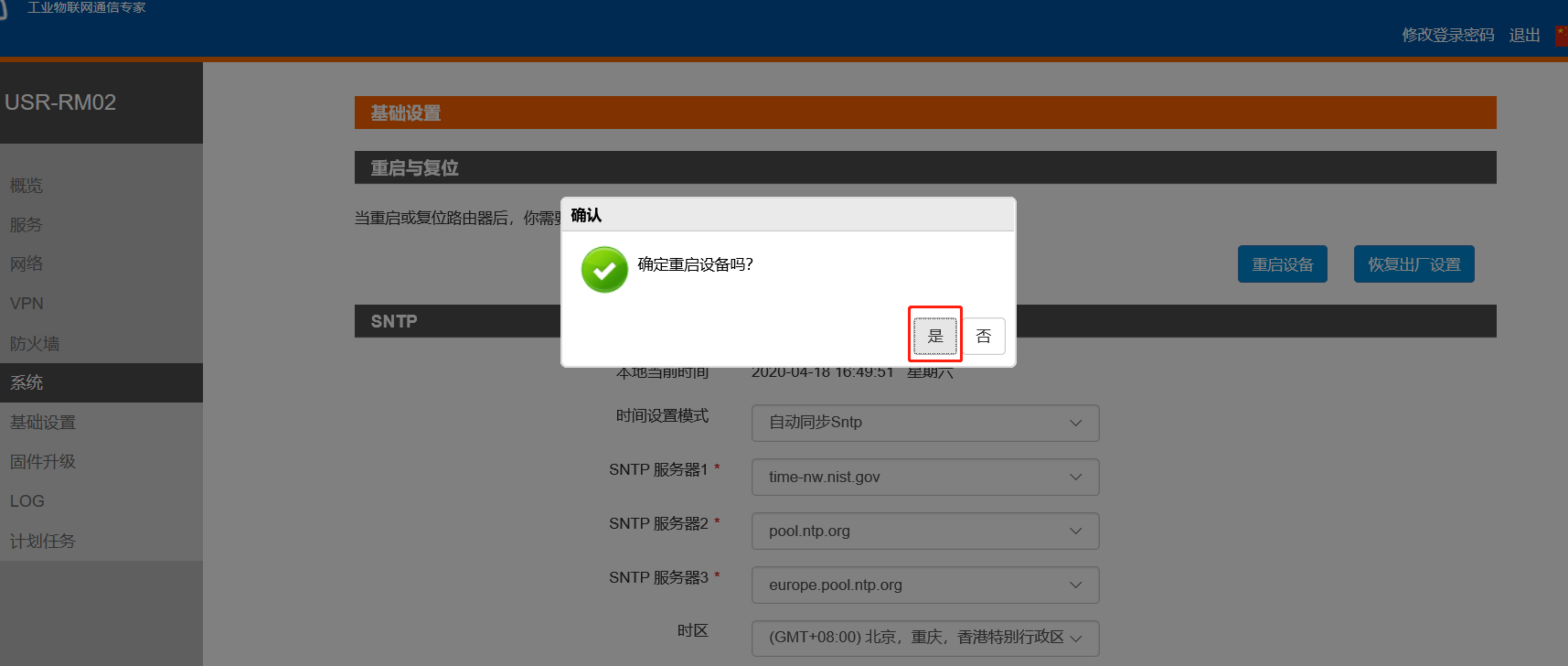 3、設置完參數后點擊系統(tǒng)--基礎設置--重啟設備。