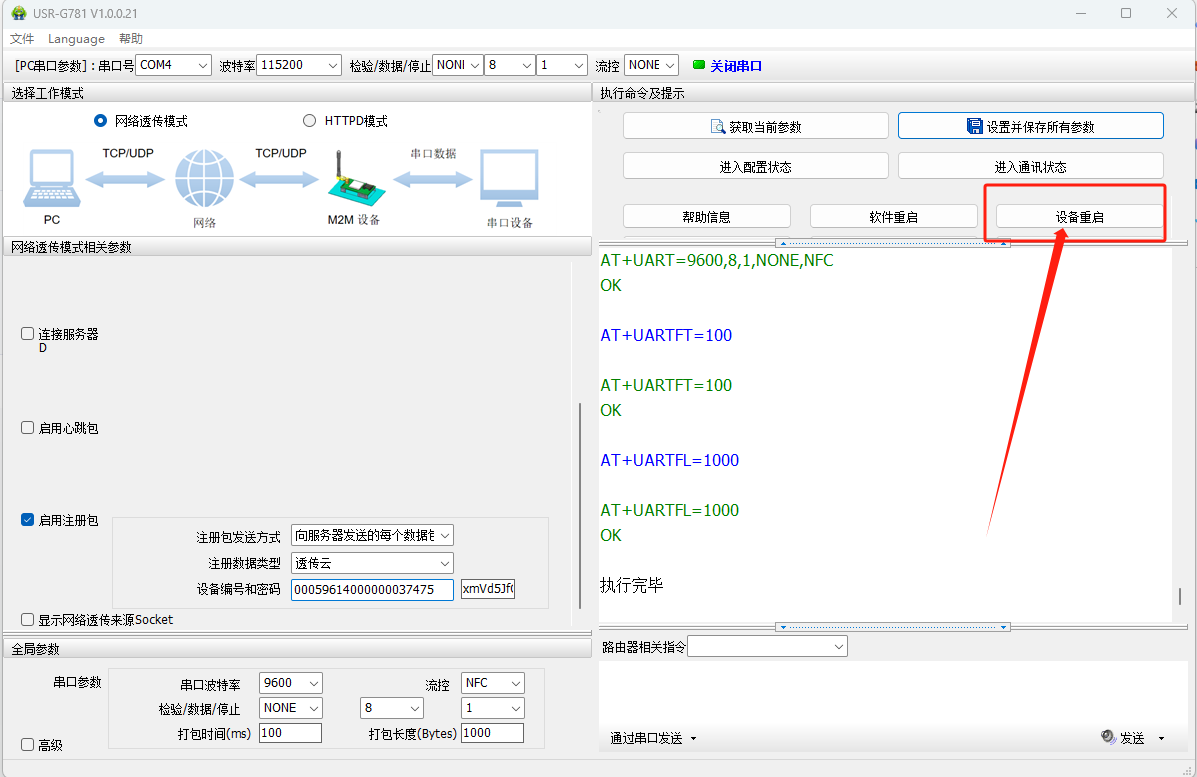 點(diǎn)擊進(jìn)入配置狀態(tài),發(fā)送+++a,設(shè)備回復(fù)OK