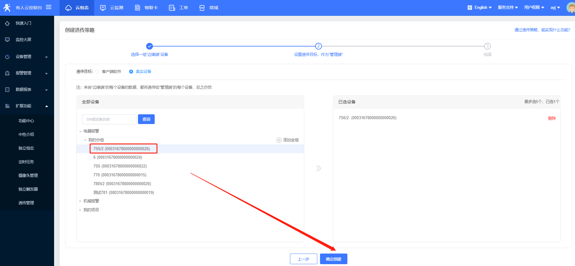 注意設(shè)備編號和密碼是對應(yīng)云端的SN和通信密碼