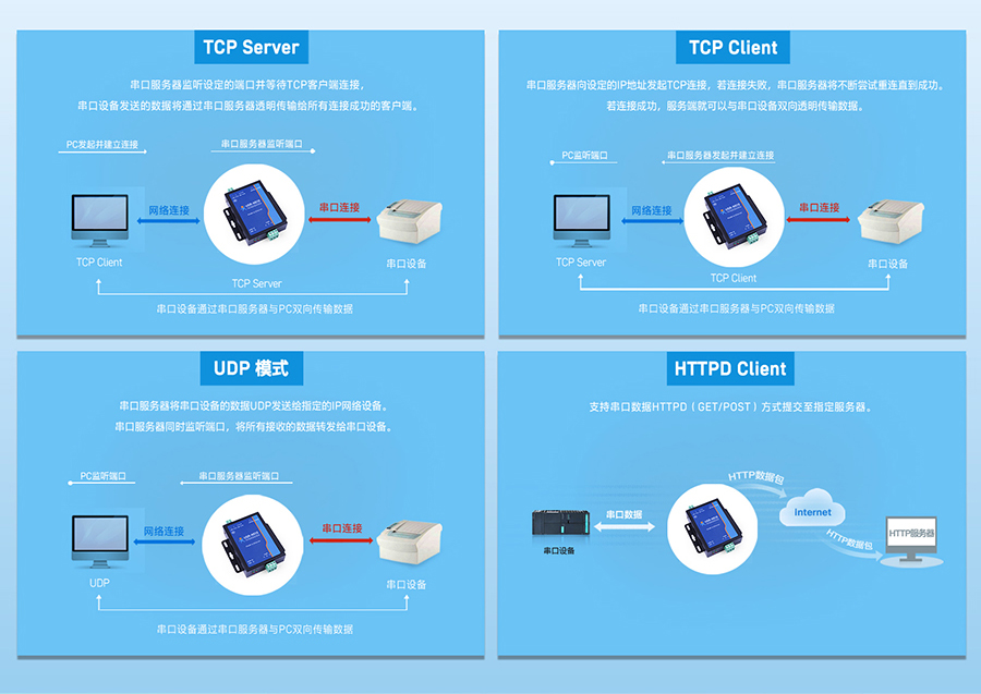 您可以通過互聯(lián)網(wǎng)在世界各地存儲、管理和配備遠程控制的機器設(shè)備。串口服務(wù)器提供串口轉(zhuǎn)互聯(lián)網(wǎng)功能,串口服務(wù)器可以將RS232/485/422串口轉(zhuǎn)換為TCP/IP網(wǎng)絡(luò)接口,保持RS-232/485/422串口和TCP/IP網(wǎng)絡(luò)接口的統(tǒng)計數(shù)據(jù)雙向透明傳輸。促使串口設(shè)備立即具有TCP/IP網(wǎng)絡(luò)接口功能,網(wǎng)絡(luò)連接進行數(shù)據(jù)通信,大大擴大串口設(shè)備的通信間距。
