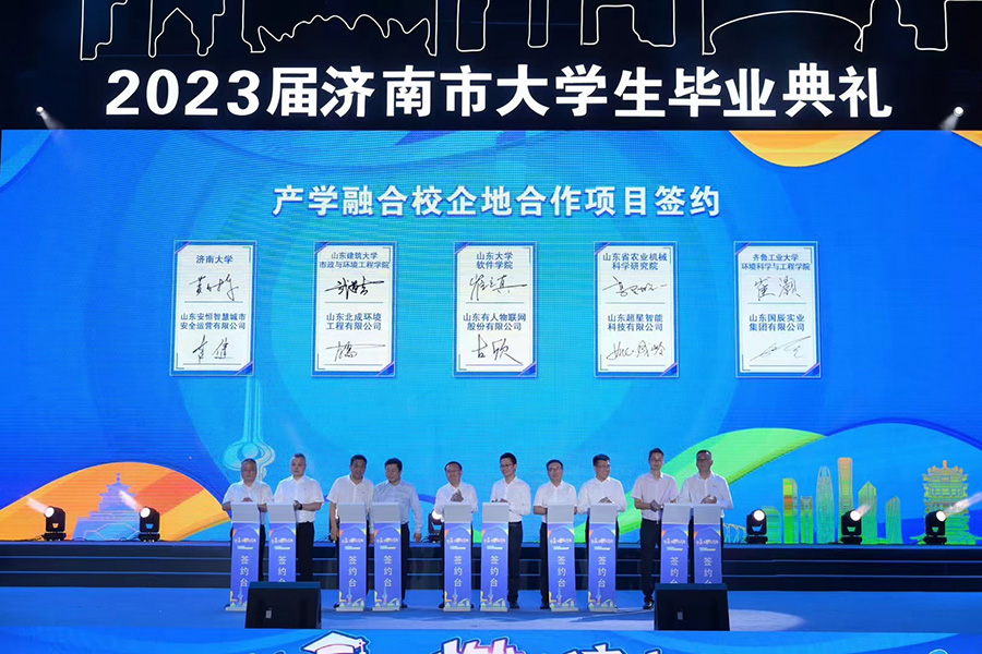 青春濟南,共贏未來。6月16日,“畢業(yè),當燃在濟南”——2023屆濟南市大學生畢業(yè)典禮在山東博物館南廣場舉行,山東省委常委、濟南市委劉強書記出席活動并為畢業(yè)生們送上美好祝福。山東大學軟件學院院長崔立真、山東有人物聯(lián)網(wǎng)股份有限公司董事長古欣出席典禮,并在產(chǎn)學研融合校企地合作項目簽約環(huán)節(jié)進行現(xiàn)場簽約。