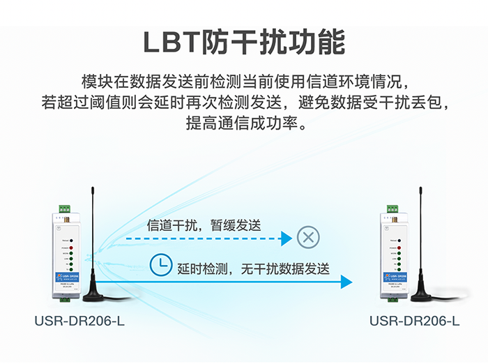 擁有LBT檢測、前向糾錯、數(shù)據(jù)重傳、局域化網(wǎng)絡(luò)過濾等多重防數(shù)據(jù)干擾措施,存在數(shù)據(jù)發(fā)送前信道檢測、數(shù)據(jù)發(fā)送中應(yīng)答機(jī)制、信噪比低或誤碼率高時提高數(shù)據(jù)正確性、局網(wǎng)絡(luò)篩選等處理,全面提升數(shù)據(jù)傳輸穩(wěn)定性。